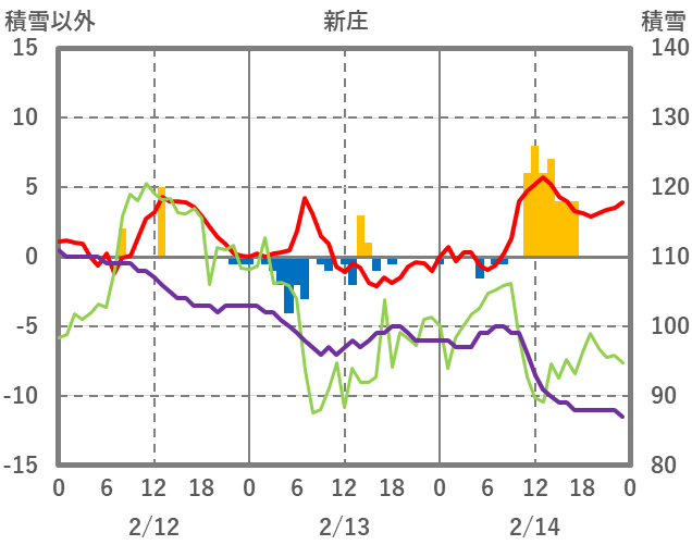 | 日 | 時 | 気温 | 降水 | 風向/風速 | 日照 | 積雪 | 降雪 |