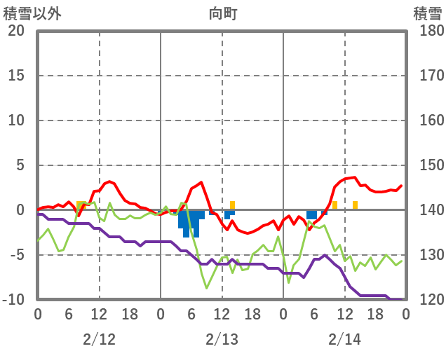| 日 | 時 | 気温 | 降水 | 風向/風速 | 日照 | 積雪 | 降雪 |