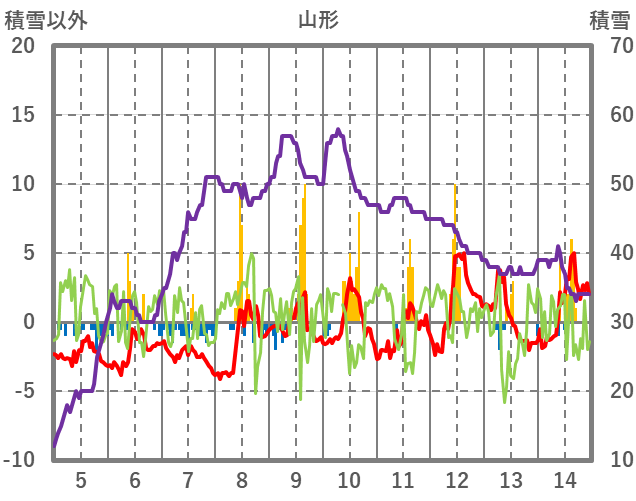 | 日 | 時 | 気温 | 降水 | 風向/風速 | 日照 | 積雪 | 降雪 |