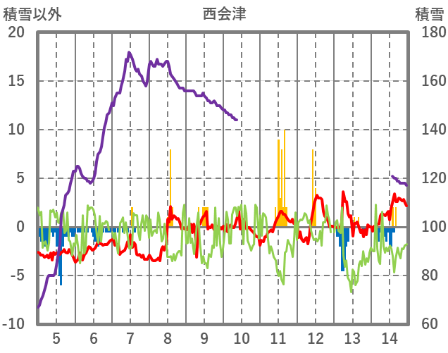 | 日 | 時 | 気温 | 降水 | 風向/風速 | 日照 | 積雪 | 降雪 |