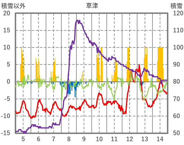 | 日 | 時 | 気温 | 降水 | 風向/風速 | 日照 | 積雪 | 降雪 |