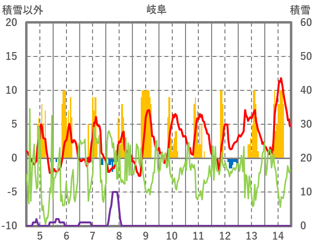 | 日 | 時 | 気温 | 降水 | 風向/風速 | 日照 | 積雪 | 降雪 |