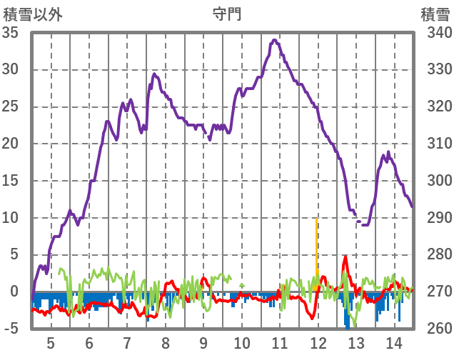 | 日 | 時 | 気温 | 降水 | 風向/風速 | 日照 | 積雪 | 降雪 |