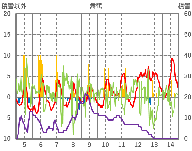 | 日 | 時 | 気温 | 降水 | 風向/風速 | 日照 | 積雪 | 降雪 |