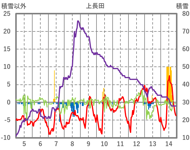 | 日 | 時 | 気温 | 降水 | 風向/風速 | 日照 | 積雪 | 降雪 |