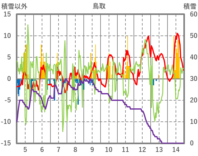 | 日 | 時 | 気温 | 降水 | 風向/風速 | 日照 | 積雪 | 降雪 |