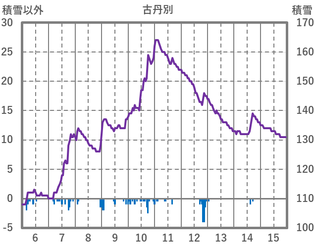| 日 | 時 | 気温 | 降水 | 風向/風速 | 日照 | 積雪 | 降雪 |