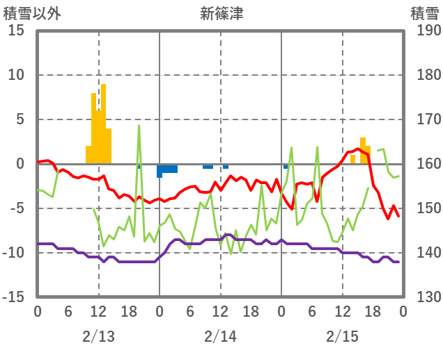 | 日 | 時 | 気温 | 降水 | 風向/風速 | 日照 | 積雪 | 降雪 |