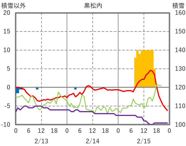 | 日 | 時 | 気温 | 降水 | 風向/風速 | 日照 | 積雪 | 降雪 |
