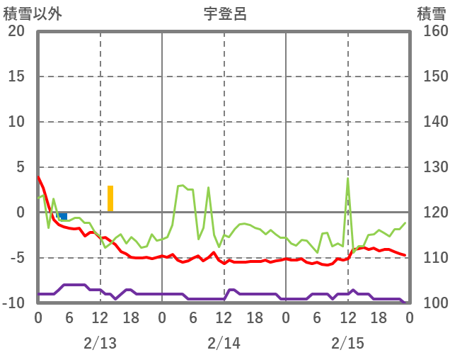 | 日 | 時 | 気温 | 降水 | 風向/風速 | 日照 | 積雪 | 降雪 |