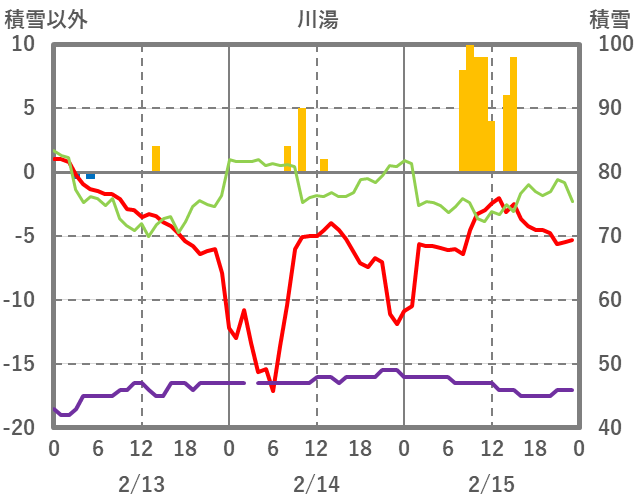 | 日 | 時 | 気温 | 降水 | 風向/風速 | 日照 | 積雪 | 降雪 |