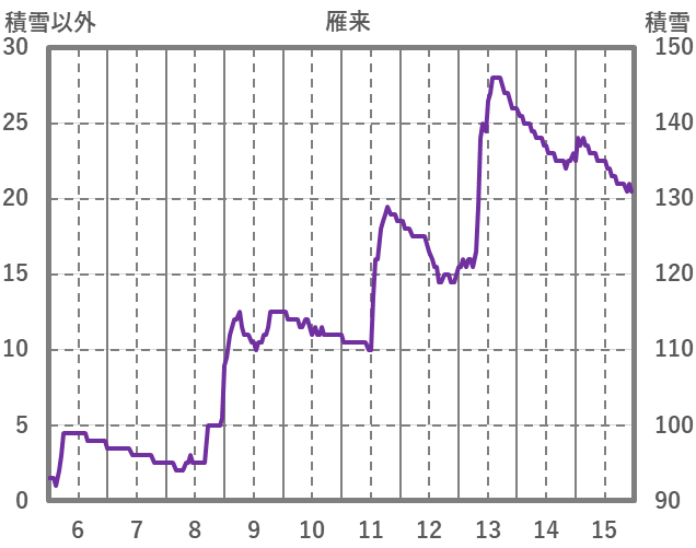 | 日 | 時 | 気温 | 降水 | 風向/風速 | 日照 | 積雪 | 降雪 |