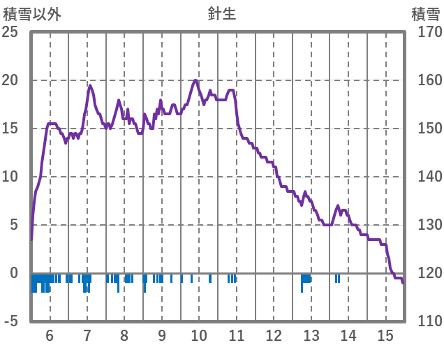 | 日 | 時 | 気温 | 降水 | 風向/風速 | 日照 | 積雪 | 降雪 |