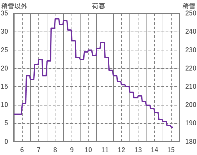| 日 | 時 | 気温 | 降水 | 風向/風速 | 日照 | 積雪 | 降雪 |