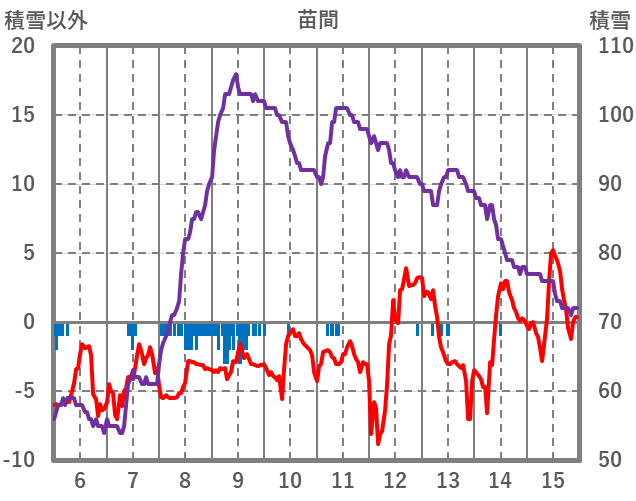 | 日 | 時 | 気温 | 降水 | 風向/風速 | 日照 | 積雪 | 降雪 |