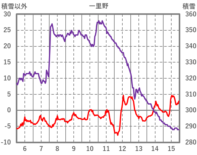 | 日 | 時 | 気温 | 降水 | 風向/風速 | 日照 | 積雪 | 降雪 |
