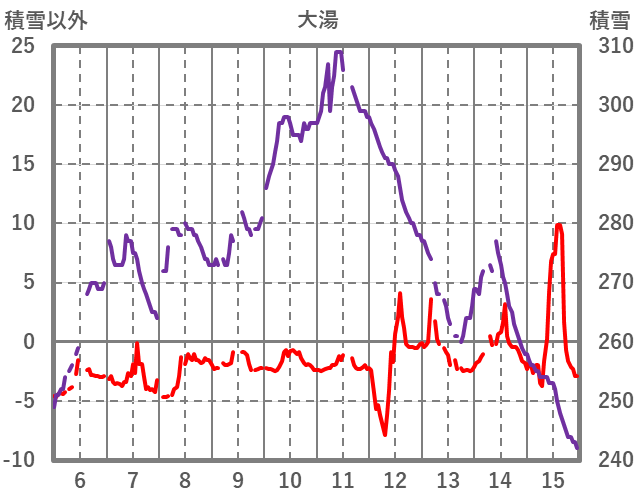 | 日 | 時 | 気温 | 降水 | 風向/風速 | 日照 | 積雪 | 降雪 |