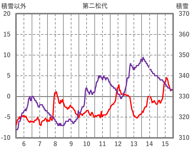 | 日 | 時 | 気温 | 降水 | 風向/風速 | 日照 | 積雪 | 降雪 |