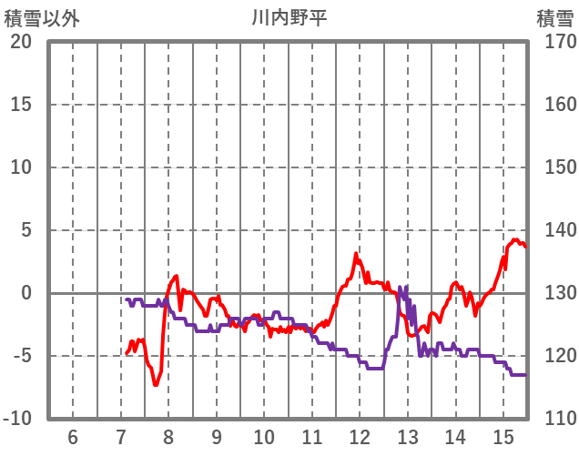 | 日 | 時 | 気温 | 降水 | 風向/風速 | 日照 | 積雪 | 降雪 |
