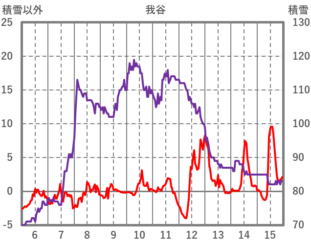 | 日 | 時 | 気温 | 降水 | 風向/風速 | 日照 | 積雪 | 降雪 |