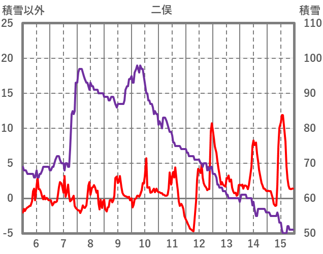 | 日 | 時 | 気温 | 降水 | 風向/風速 | 日照 | 積雪 | 降雪 |