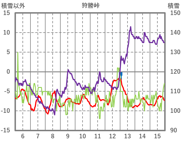 | 日 | 時 | 気温 | 降水 | 風向/風速 | 日照 | 積雪 | 降雪 |