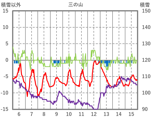 | 日 | 時 | 気温 | 降水 | 風向/風速 | 日照 | 積雪 | 降雪 |