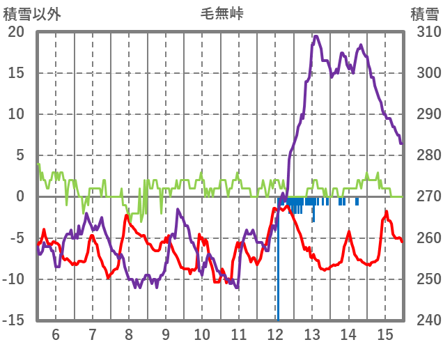 | 日 | 時 | 気温 | 降水 | 風向/風速 | 日照 | 積雪 | 降雪 |