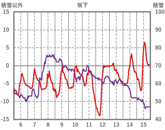 | 日 | 時 | 気温 | 降水 | 風向/風速 | 日照 | 積雪 | 降雪 |
