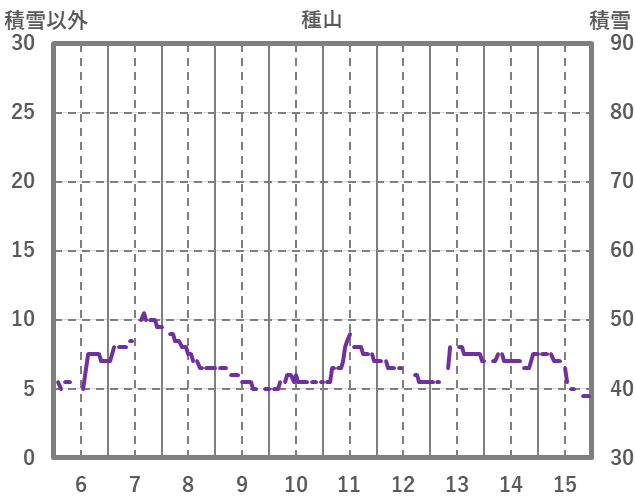 | 日 | 時 | 気温 | 降水 | 風向/風速 | 日照 | 積雪 | 降雪 |