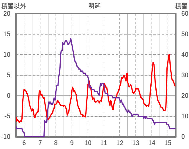 | 日 | 時 | 気温 | 降水 | 風向/風速 | 日照 | 積雪 | 降雪 |
