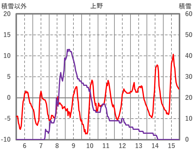 | 日 | 時 | 気温 | 降水 | 風向/風速 | 日照 | 積雪 | 降雪 |