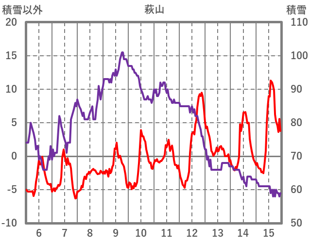 | 日 | 時 | 気温 | 降水 | 風向/風速 | 日照 | 積雪 | 降雪 |