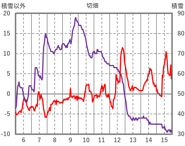 | 日 | 時 | 気温 | 降水 | 風向/風速 | 日照 | 積雪 | 降雪 |