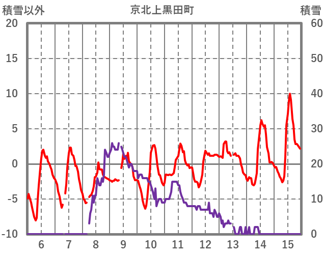 | 日 | 時 | 気温 | 降水 | 風向/風速 | 日照 | 積雪 | 降雪 |