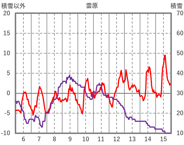 | 日 | 時 | 気温 | 降水 | 風向/風速 | 日照 | 積雪 | 降雪 |