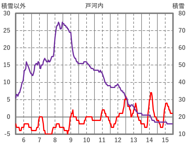 | 日 | 時 | 気温 | 降水 | 風向/風速 | 日照 | 積雪 | 降雪 |
