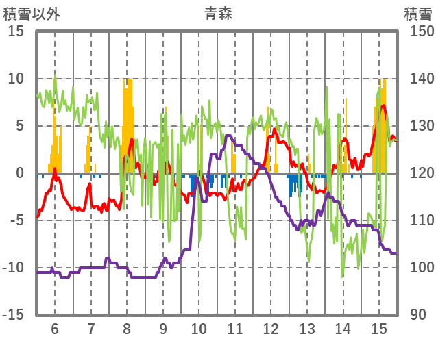 | 日 | 時 | 気温 | 降水 | 風向/風速 | 日照 | 積雪 | 降雪 |