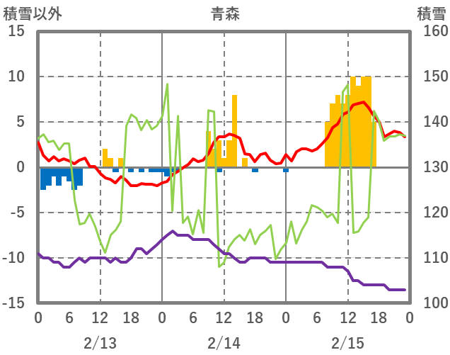 | 日 | 時 | 気温 | 降水 | 風向/風速 | 日照 | 積雪 | 降雪 |