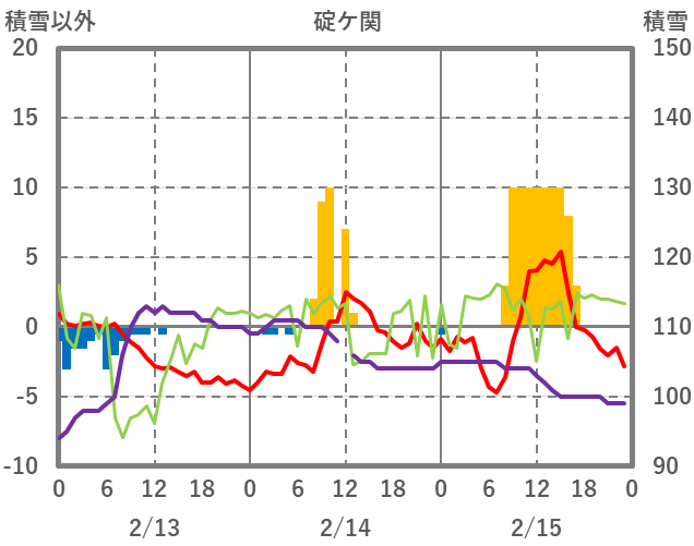 | 日 | 時 | 気温 | 降水 | 風向/風速 | 日照 | 積雪 | 降雪 |