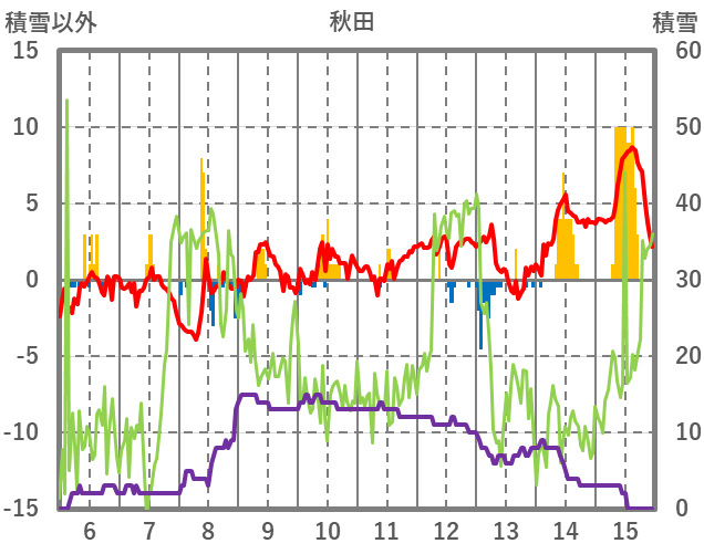 | 日 | 時 | 気温 | 降水 | 風向/風速 | 日照 | 積雪 | 降雪 |