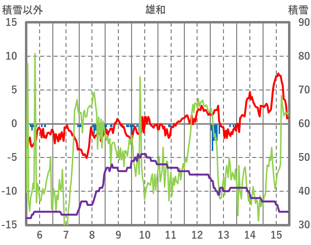 | 日 | 時 | 気温 | 降水 | 風向/風速 | 日照 | 積雪 | 降雪 |