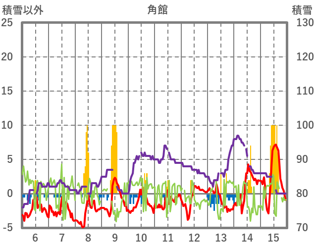 | 日 | 時 | 気温 | 降水 | 風向/風速 | 日照 | 積雪 | 降雪 |