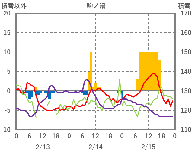 | 日 | 時 | 気温 | 降水 | 風向/風速 | 日照 | 積雪 | 降雪 |