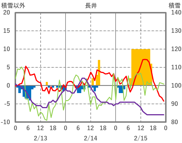 | 日 | 時 | 気温 | 降水 | 風向/風速 | 日照 | 積雪 | 降雪 |
