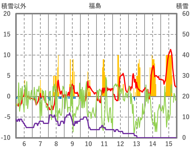| 日 | 時 | 気温 | 降水 | 風向/風速 | 日照 | 積雪 | 降雪 |