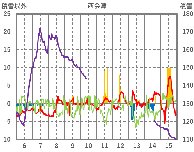 | 日 | 時 | 気温 | 降水 | 風向/風速 | 日照 | 積雪 | 降雪 |