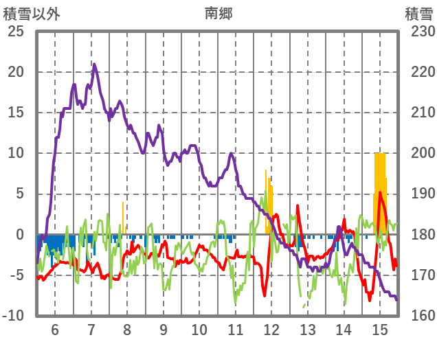 | 日 | 時 | 気温 | 降水 | 風向/風速 | 日照 | 積雪 | 降雪 |