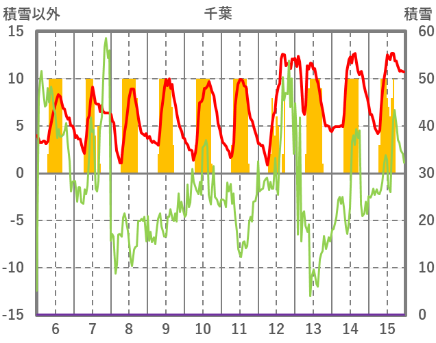| 日 | 時 | 気温 | 降水 | 風向/風速 | 日照 | 積雪 | 降雪 |