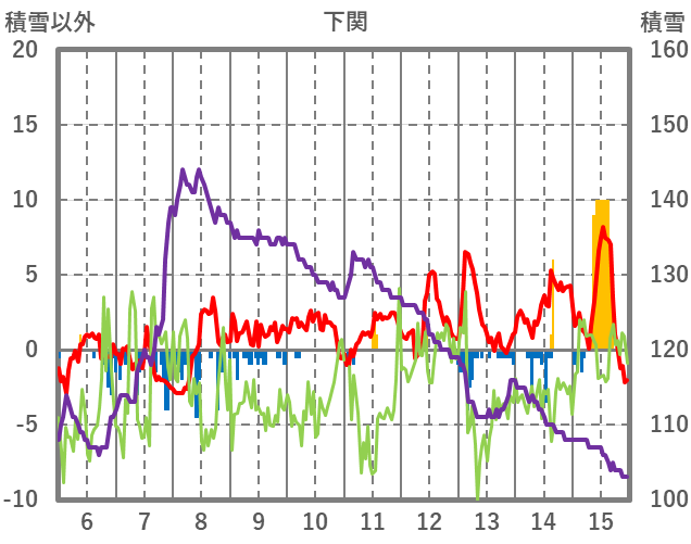 | 日 | 時 | 気温 | 降水 | 風向/風速 | 日照 | 積雪 | 降雪 |